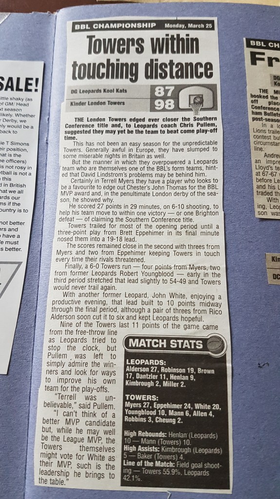Leopards Rico Alderson continued his rich vein of form with 27 points but could not prevent the Towers from taking the crucial two points.