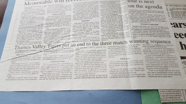 The Leopards shot out of the blocks a 6-0 tear helping them to an early 29-14 lead but they had no answer to the shooting of Tigers pair John McCord and Greg Meldrum who both scored game high 26 points. The Tigers posted final quarter bursts of 7 and 8 with out reply to seal the victory.