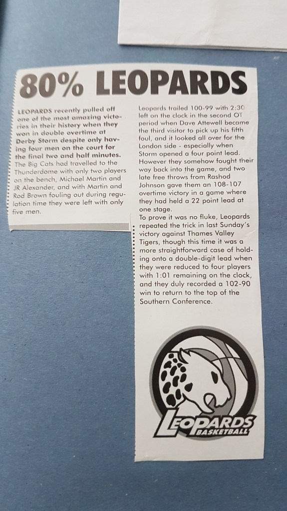 Edinburgh had a blistering start lead 20-7 in the opening quarter, but Leopards fought back with an 8-0 start to the third. After a Joel Burns three and a John McCord dunk had put the vistors three up 12s from the end, the Leopards couldn’t tie things despite two last gasp attempts.