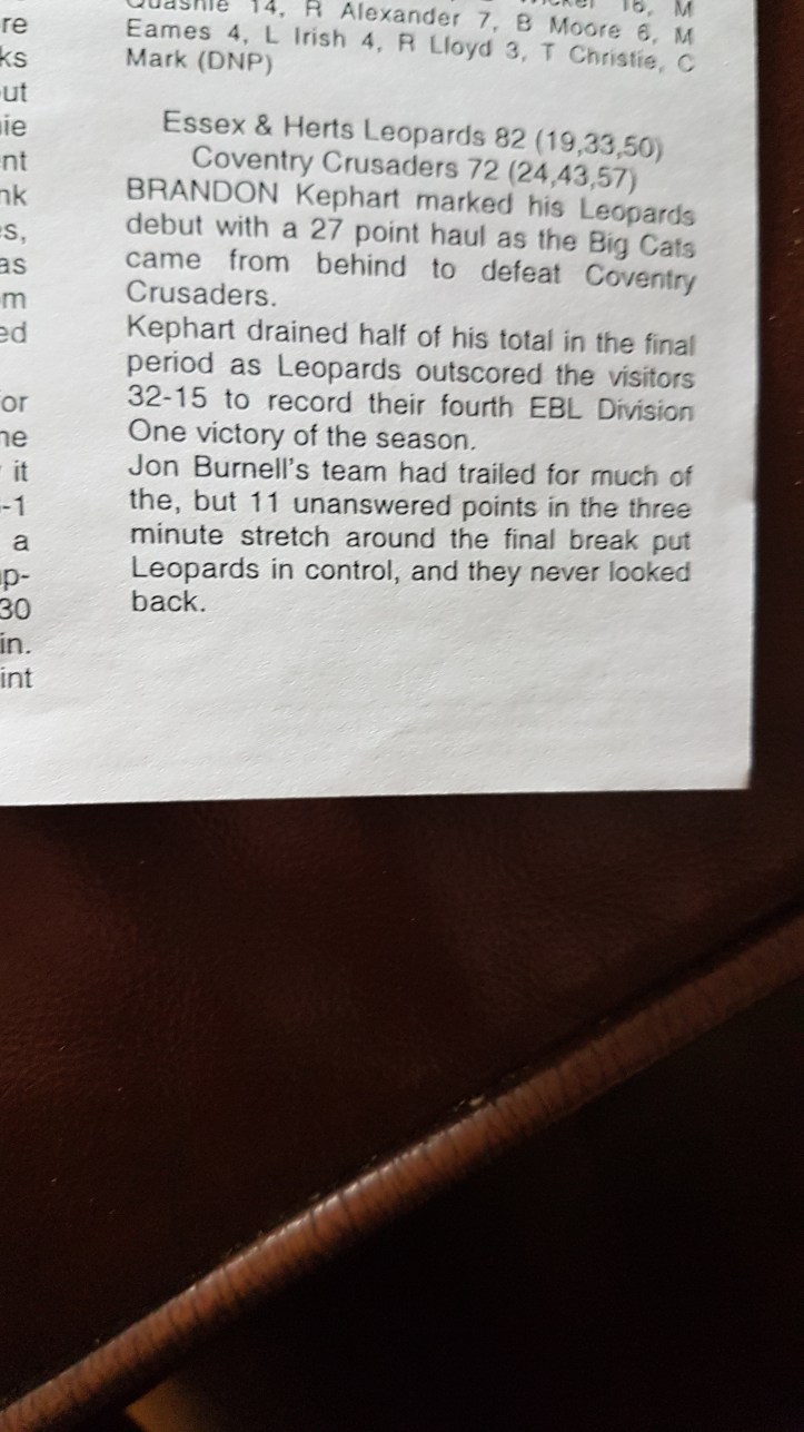 Darrell Bethune added 24 points and seven boards while AJ Roberts had nine rebounds and seven assists to go with his 17 points. The Big Cats also shared the ball well, finishing with 21 assists to the visitors’ 11.Thunder had arrived on the back of a win against Hemel Storm thanks to 40 points from Division One’s leading scorer