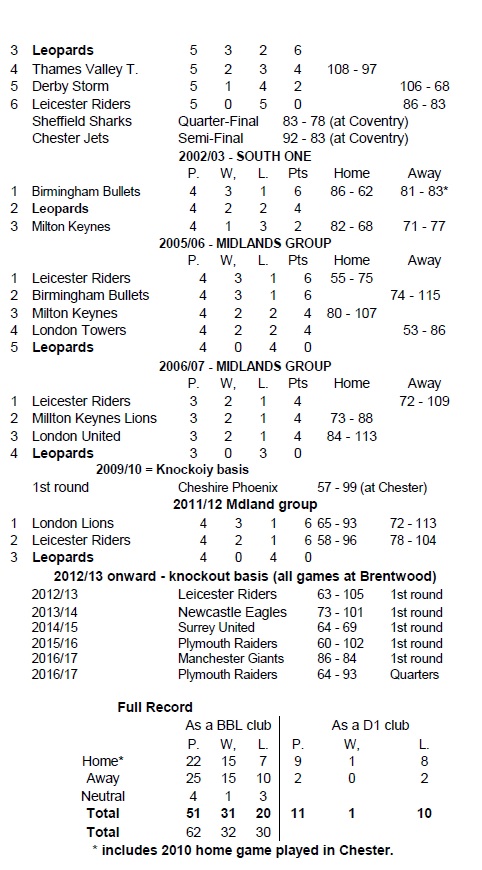 Inevitably their reward was a home tie against (you’ve guessed it) Plymouth, but the tie passed off with quietly with a 93-64 defeat in front of a big crowd at Brentwood. With Leopards suffering relegation at the end of the 2017 campaign that was the last time they were invited into the competition.