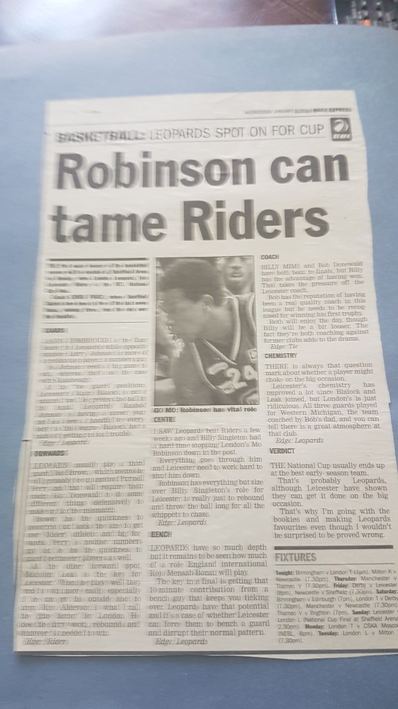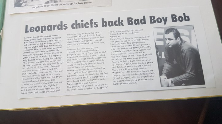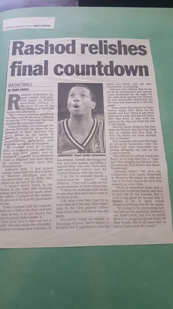 The 2001 final wasn’t quite as successful for Bob Donewald’s Leopards as they suffered an agonising defeat against Leicester Riders. It was a match-up that the BBL must have been delighted to promote as Leopards faced their former coach Billy Mims. While many Leopards fans still liked the man who’d coached them for the first five years of their history and won back-to-back league titles as well as the 1997 Cup, Donewald hated him – and the feeling was mutual.