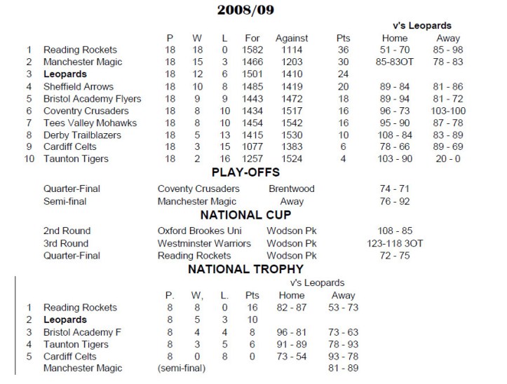 A deal to be part of the BBL’s Hoops 4 Health community programme was also a massive boost for Leopards, allowing them to add full-time players are return to renting club accommodation as they built a side they believed they could challenge for the title. Unfortunately much of the work (and money) failed to materialise and although it didn’t effect things on the court during 2008/9, it had serious ramifications the following season,