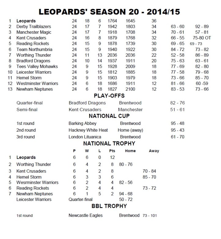 A concerted effort via social media saw the fans flock in. The Brentwood Centre’s seating had been out of action for most of the season, with chairs around the court, and as the arena filled up more and more chairs had to be brought it. It was truly standing room only and it what remains arguably the biggest home game the new Leopards have ever had (all the other trophies were won away from home or on neutral courts) the team didn’t disappoint as they showed no nerves on the way to an 84-72 victory. It was a long night.