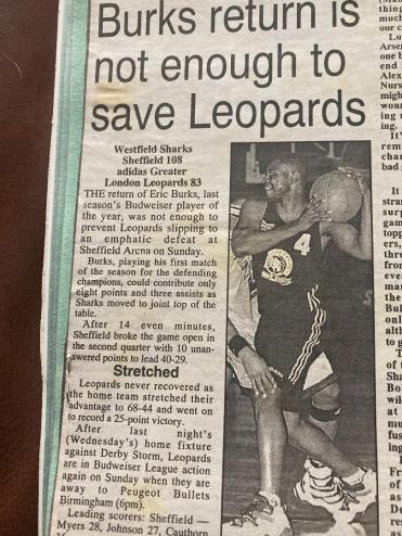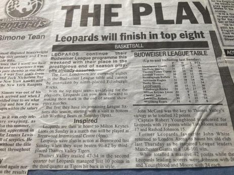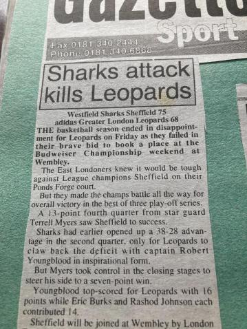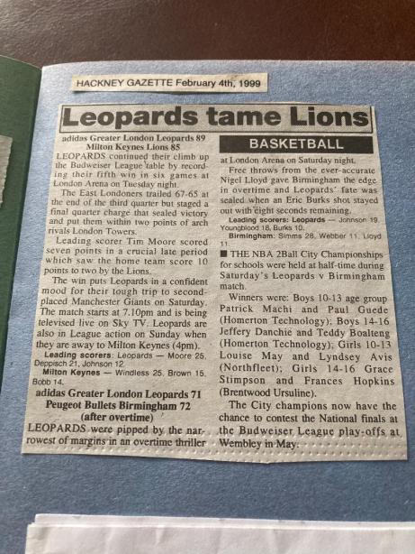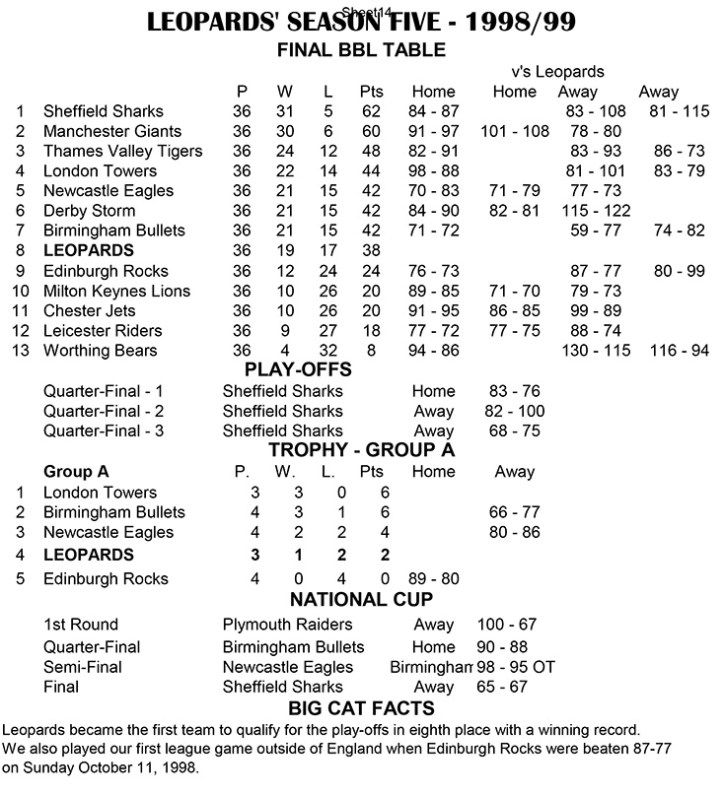 It was a case of after the Lord Mayor’s Show for Leopards as the 1998/99 season saw them fail to get close to the success of the previous two campaigns. After chucking money at their team with little success, Manchester Giants decided to sign the core of Leopards’ title winning side with John White, Makeba and John White making the move north. Giants failed in their attempt to sign captain Robert Youngblood, but Brian Moore was the only other player to return from the previous season’s title-winning side. Eric Burks’ dreams of an NBA job were ruined by the dispute between franchise owners and the players’ union, and the guard returned to the Big Cats early in the season. Club owner Ed Simons was clearly disappointed with Giants’ pillaging his team, commenting that he’d thought that one day the Leopards might be a feeder club, but he’s hoped it would to an NBA franchise rather than Giants. He must have consoled by Giants again finishing the season with an empty trophy cabinet.