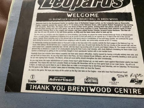 The season saw more games at the Brentwood Centre as new landlords London Knights ice hockey team proved difficult to work with, and a couple of games were also staged at Southend Leisure Centre as Leopards moved their training and accommodation to the Essex town.